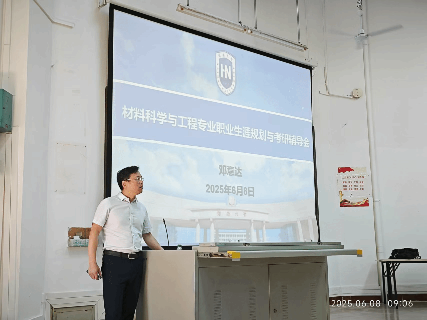 2025年6月8日上午,888集团 在2教108教室举办面向2024级材料专业同学的职业生涯规划与考研动员活动。本次活动由材料科学与工程专业责任教授邓意达教授主讲,2024级材料科学与工程专业全体同学及班主任参与。