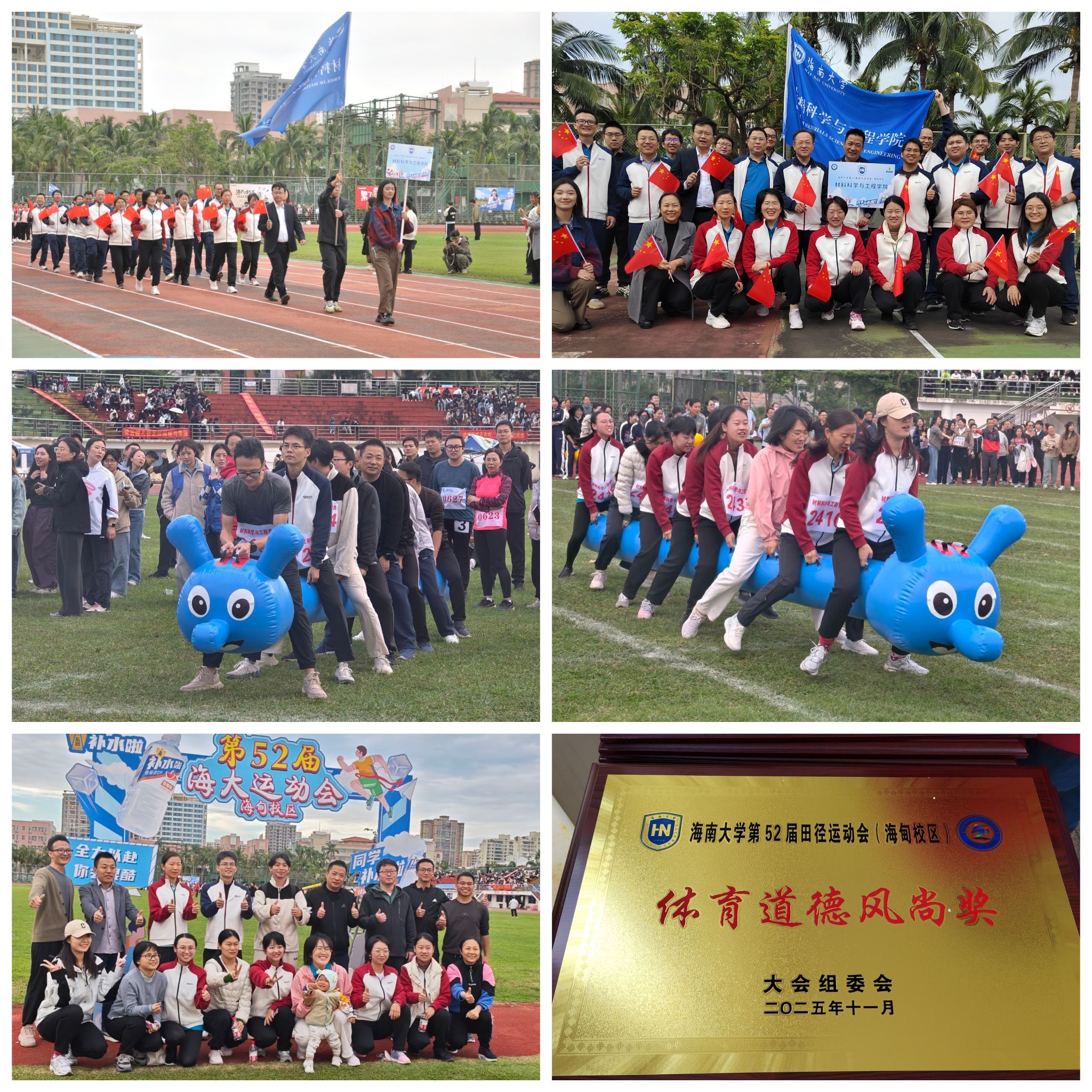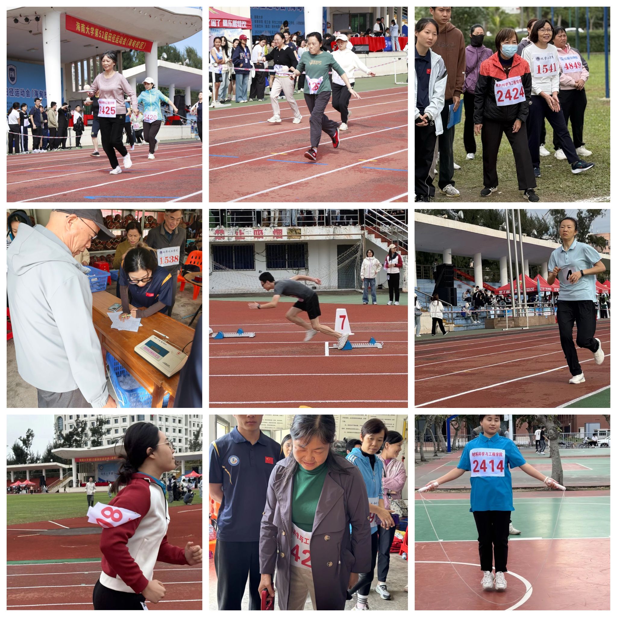 海南大学第52届田径运动会(海甸校区)于2025年11月19-21日在海甸校区第一田径运动场举行。888集团 共派出38名教职工参赛,其中男队员18名,女队员20名。在短跑、长跑、托球跑、跳远、铅球、握力、滚球投准及趣味项目中,他们默契配合、全力以赴,团队最终收获5枚金牌、1枚银牌和1枚铜牌,取得79分的优异成绩,其中1人打破校运动会记录。
