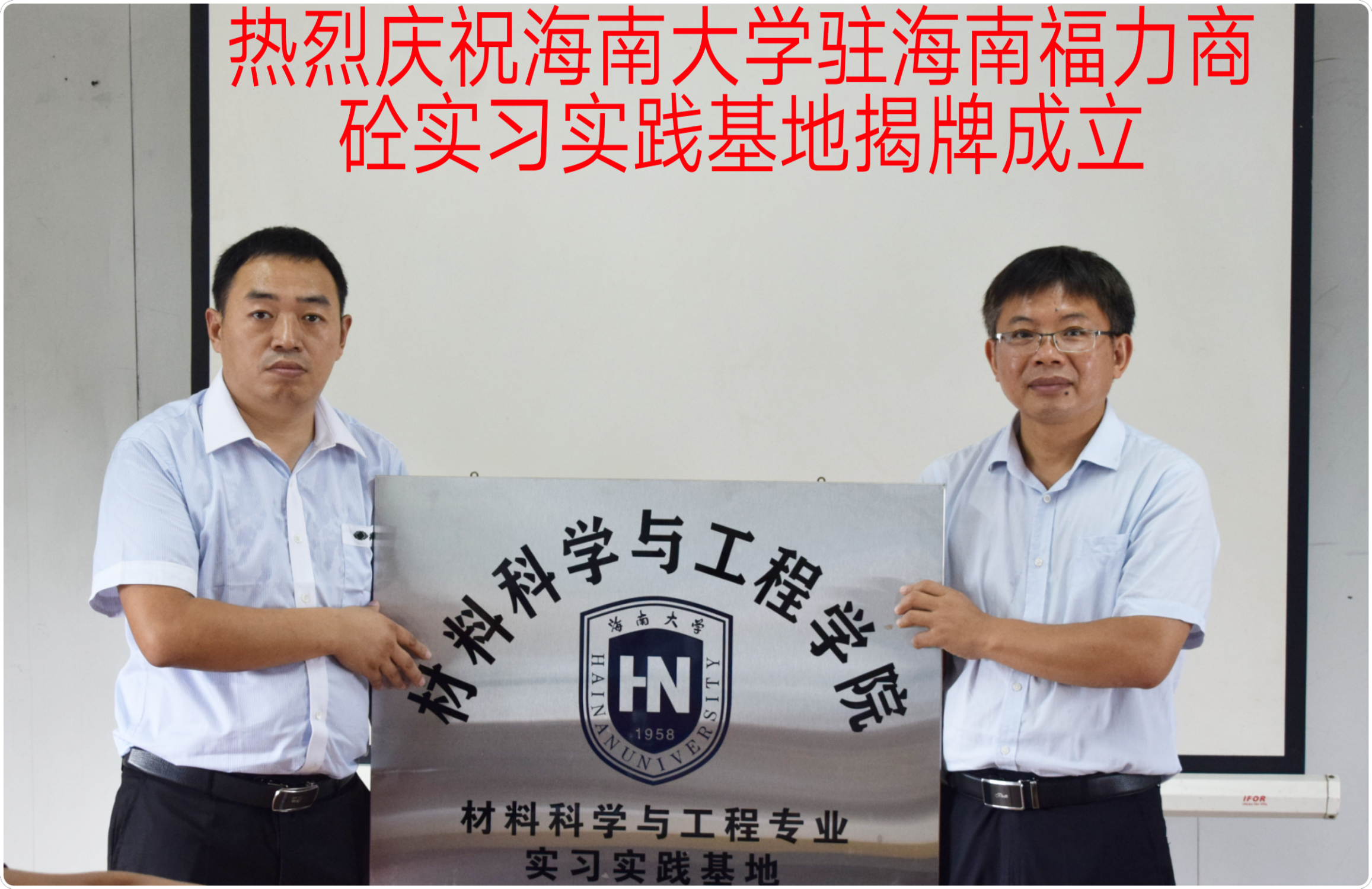2019年6月26日下午,888集团(中国)官方网站 胡先文副书记和陈永副院长带队考察海南福力商砼和海南恒宝两家公司,亲切慰问正在公司参加实习实践的同学,并出席海南大学材料科学与工程专业在两家公司的实习实践基地揭牌仪式。学院材料系李长久主任和涂进春副主任陪同参与了两家公司的洽谈和揭牌仪式。