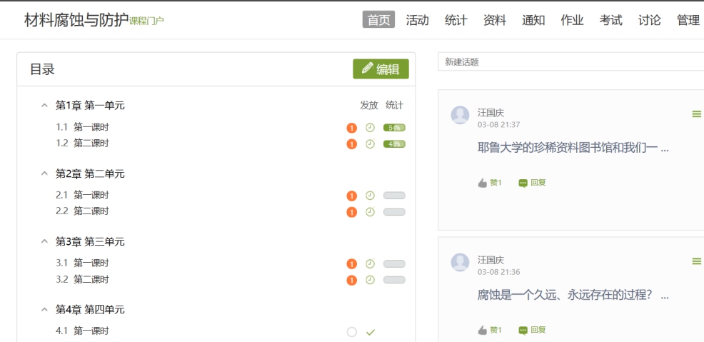//www.888jt.net 网络教学有实时性高、知识量大等特点,本次教学过程中我们很早就选定了网络平台,采用线上加线下多种方式结合的教学方法,达到了预期效果。同时,针对可能出现的网络堵塞、平台故障等突发事件制定了应急预案。《材料现代研究方法》课程采用“授课视频+课件+线上讨论答疑+在线作业”等多种形式开展教学活动,通过作业情况及时了解学生的学习情况,并通过平台的统计功能对学生的学习状态进行实施跟踪。//www.888jt.net 《材料腐蚀与防护》是一门专业课。专业课的学习和基础课不同,除了知识以外,要让同学们学会根据专业发展过程的事件,了解、学习并被训练到如何深入通过资料查阅、深入思考来达到具有发现问题、分析问题和解决问题的能力。因此调动学生的学习积极性和主动学习的能力,非常重要。因此一方面在教学平台的基础上做好建设课程、推送课程的工作,提前两周建立课程微信群,通知学生下载好超星学习通APP软件,熟悉使用方法。考虑可能出现网络问题,同时下载腾讯会议做好预案。提前设立讨论的内容,通过课堂上的互动,了解到同学们在课程当中确实有思考,设立课后查阅资料的任务,让他们喜欢专业和行业里面的奥秘,达到专业课程的目的:引导学生逐步完成从学校教育到走入生产、科研等一线工作的准备。最后因为网络问题,采用腾讯会议形式全程直播上课。//www.888jt.net