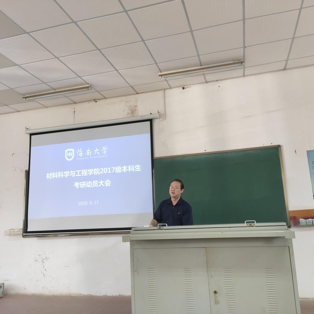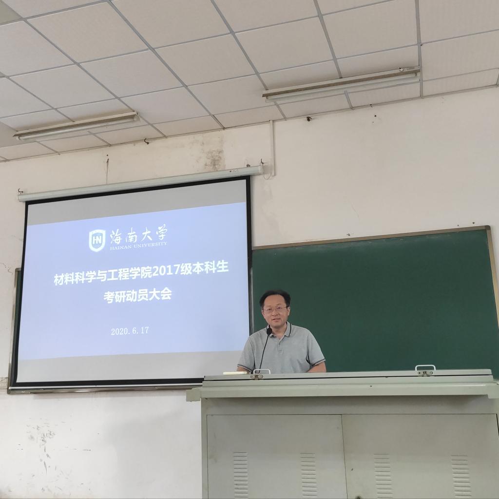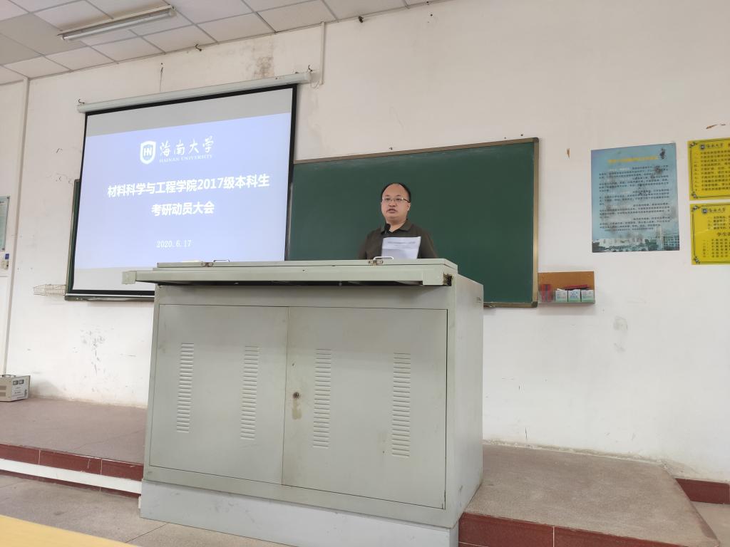 为进一步调动2017级学生考研积极性,明确考研目标,了解相关考研流程、复习和备考技巧。2020年6月17日,888集团 在2教207教室举办2017级考研动员大会。学院分管研究生教学的副院长林仕伟、分管本科生教学的副院长李长久、分管学生工作的副处级辅导员周郭军,材料系系主任文峰、高分子系系主任杜杰、2017级辅导员郎筱宇以及全体2017级本科生参加会议。
