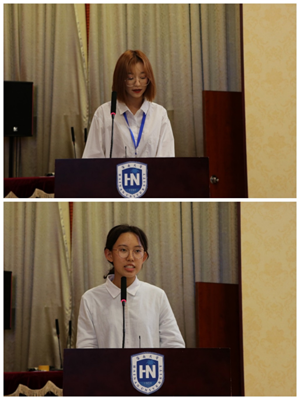 部长代表钱子萱(上)、干事代表郎璇(下)发言