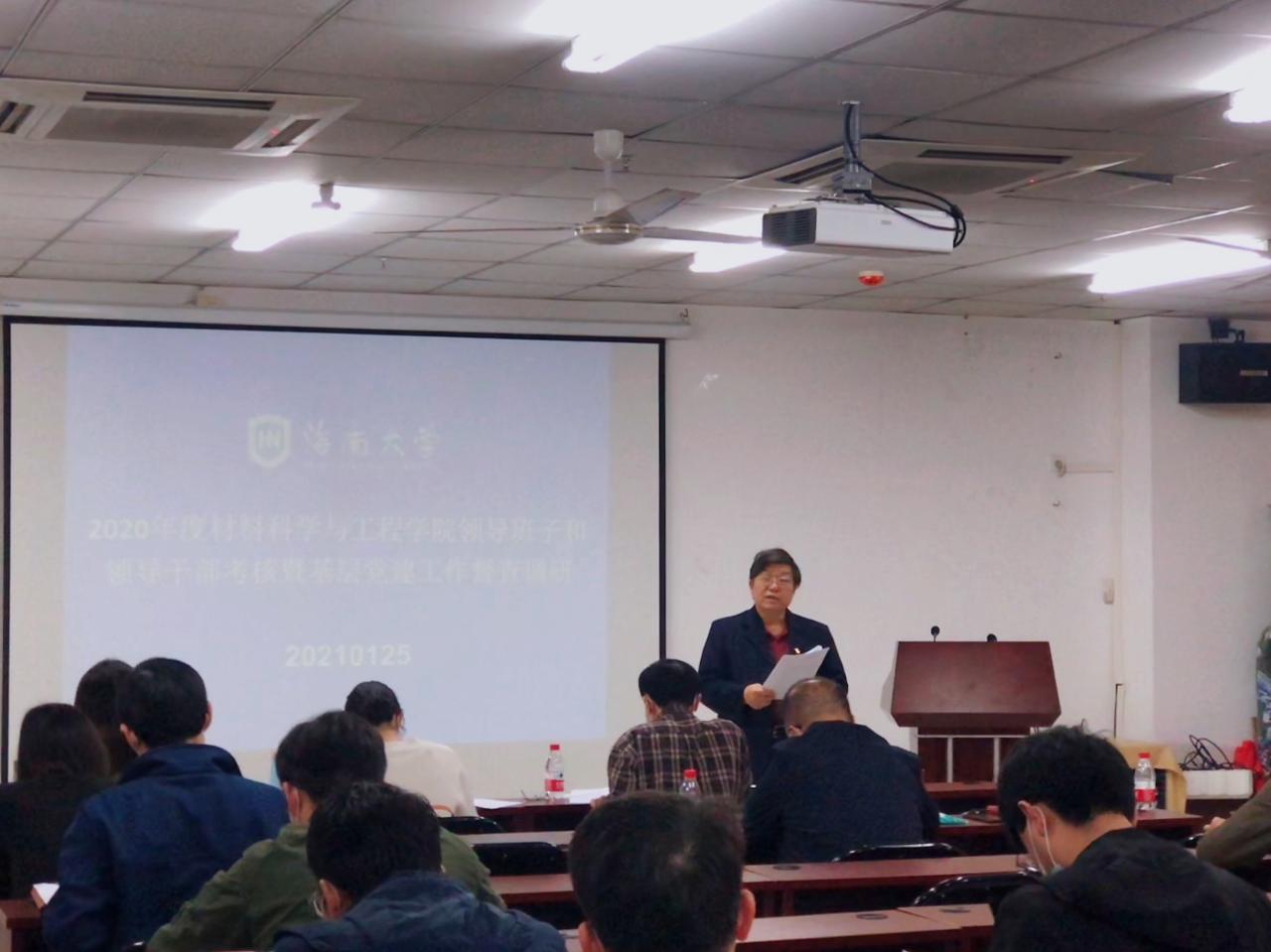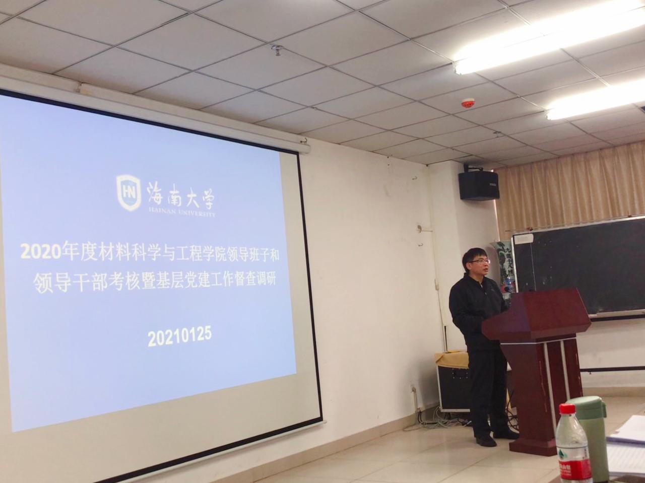 2021年1月25日下午,888集团 在研发中心710会议室召开2020年度领导班子述职述廉大会。学校考核组组长、政治与公共管理学院党委书记王默忠,考核组成员外国语学院党委副书记李洋、外国语学院学工办主任刘颖敏、园艺学院辅导员李雪婷出席,学院领导班子全体成员、全院教职工参加会议。会议由学院党委书记胡先文主持。