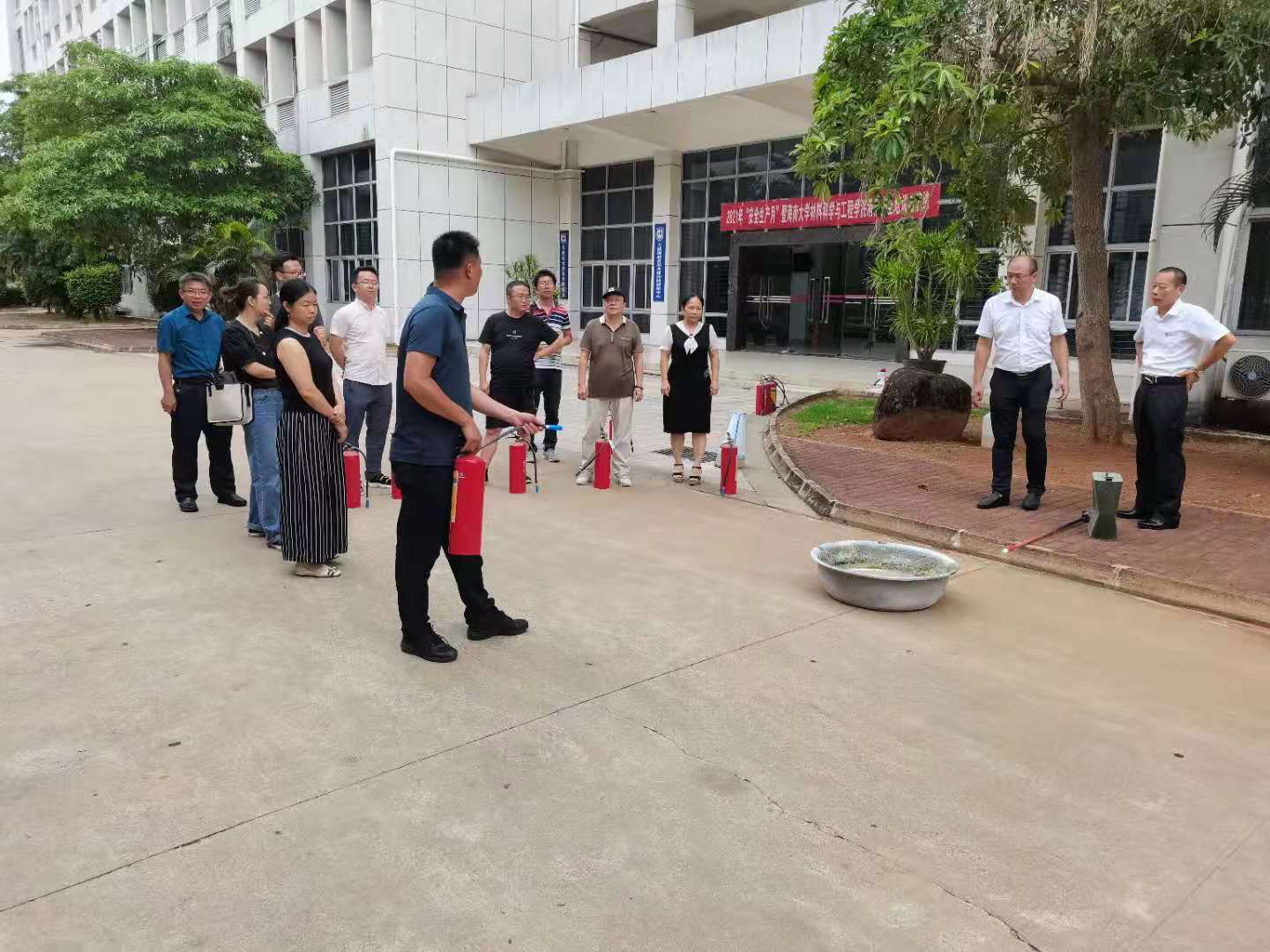 最后学院组织全体职工参加了消防安全现场演练,正确使用消防安全灭火器,提高了安全防范意识。