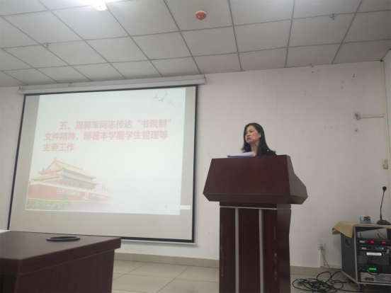 林仕伟、李长久、周郭军和涂进春等同志分别传达了学校有关文精神,部署了各自分管的主要工作。