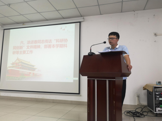胡先文同志传达学校暑期工作会议精神,部署本学期学院重点工作。8月27日至29日,学校召开2021年暑期工作会议,会议主题是:高举习近平新时代中国特色社会主义思想伟大旗帜,解放思想、敢闯敢试、大胆创新,坚持高质量发展、全面提升办学水平,创建与海南自由贸易港发展相适应的一流大学。会议学习了校党委符宣国书记的讲话、骆清铭校长的主题报告,传达了完全学分制、书院制和协同创新中心等文件精神。
