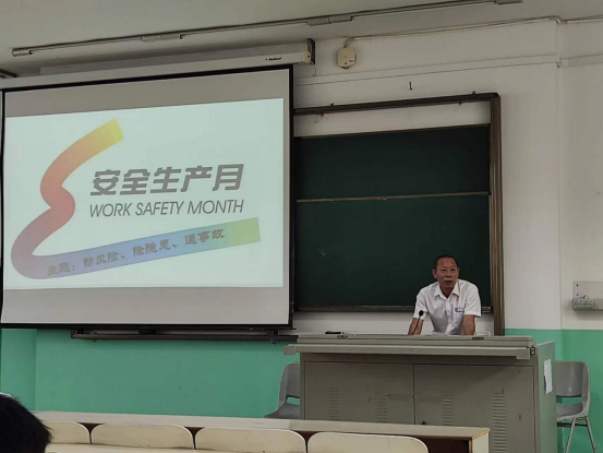为深入开展“实战化大培训”、“专业化大练兵”、“特色化大比武”活动,提高安全防范意识,加强安全风险管控能力,实现常态化培训与实战演练,确保实验室安全运行保障工作,2022年5月17日下午在3号教学楼310教室学院邀请学校保卫处王智科长和林德鑫老师做实验室消防安全教育培训,涂进春副院长主持,胡先文书记出席,全体师生参加了本次安全教育培训与演练。