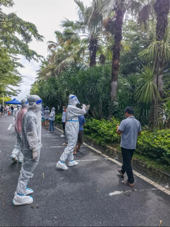 虞培军老师是海南大学第五批抗疫志愿队的一员,该志愿队共有16名成员,对口支援陵水黎族自治县英州镇。像刘亚老师这样的海大“逆行者”还有很多。截至目前,海南大学先后派出六批抗疫志愿队,共计83人,分赴三亚、陵水等地参与疫情防控志愿工作。