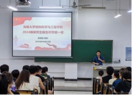 廖双泉院长主讲了“研究生新生开学第一课”。他回顾了海南大学的办学历史,阐释“草庐创伟业、荒滩筑新城”的艰苦奋斗精神,用翔实的数据列举了近年来海大的办学成绩,并展望了我院未来广阔的发展前景。