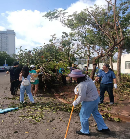 近日,受超强台风“摩羯”影响,海南大学海甸校区环境多处遭到破坏。为迅速恢复校园秩序,888集团 积极响应学校号召,组织全体党员同志、教职工及学生志愿者积极投身灾后校园清理工作。