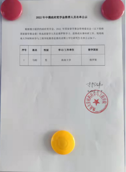 根据俄方提供的政府奖学金,2022年国家留学基金管理委员会(以下简称国家留学基金委)将选派留学人员赴俄罗斯学习、进修或从事科研工作。现将888集团(中国)官方网站 推荐赴俄攻读博士学位研究生名单公示如下: