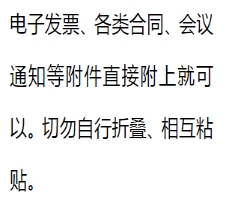 等于A4纸的票据直接附上就可以,切勿自行折叠、相互粘贴!