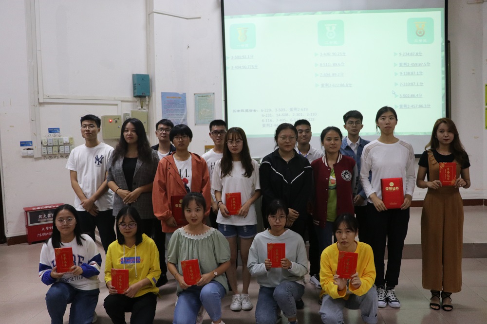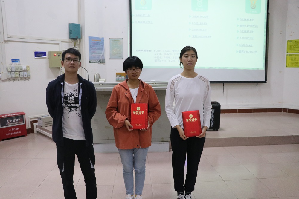 大会最后,主持人公布了参与此次活动的宿舍得分及获奖名单,嘉宾分别为获奖宿舍颁奖并合影留念。