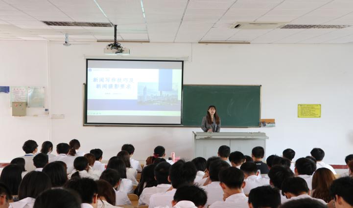 大会伊始,杨馥娴老师以新闻写作技巧及新闻摄影要求为主题,对学生干部进行培训,杨老师首先为学生干部介绍了新闻稿的结构、