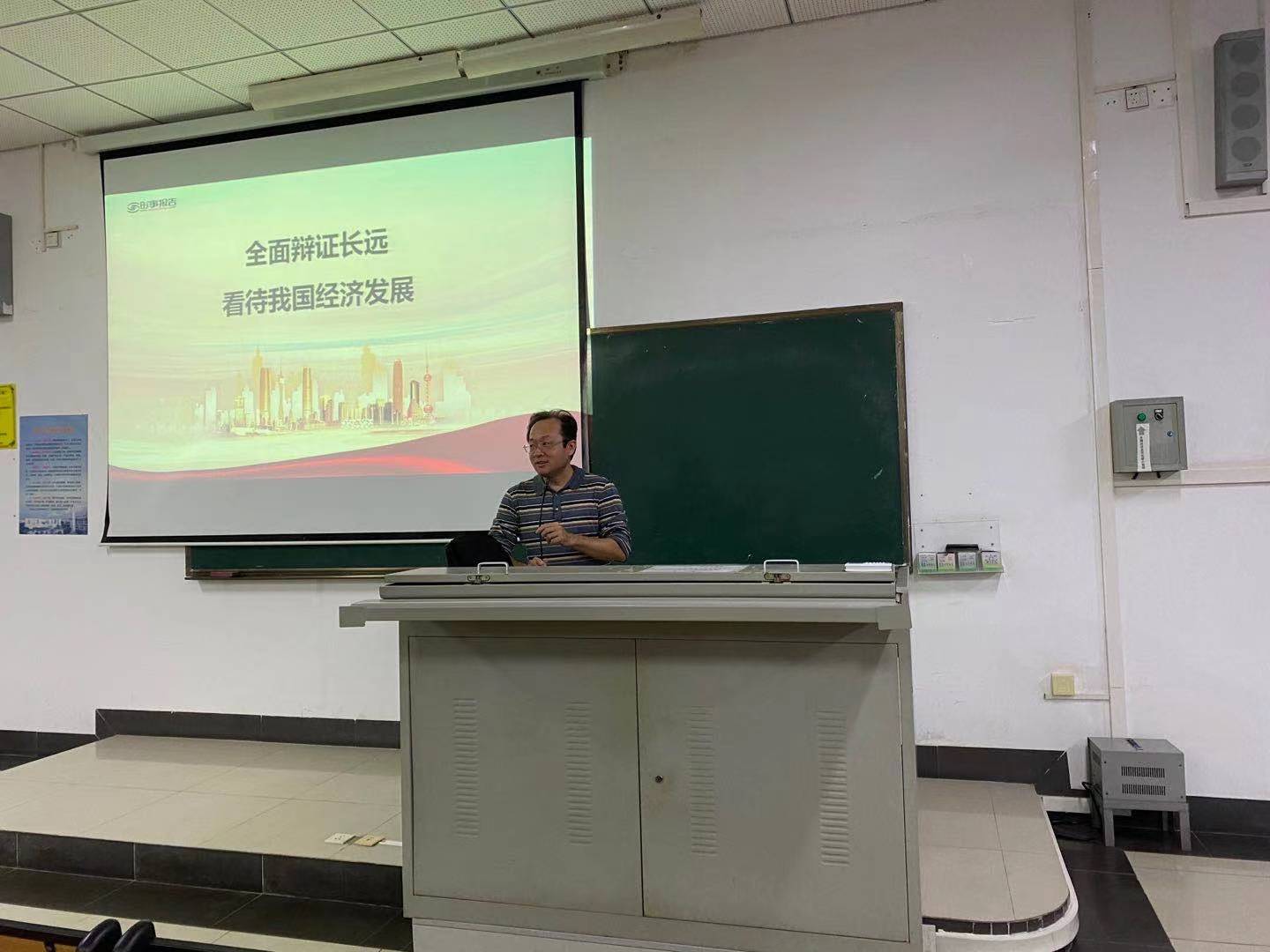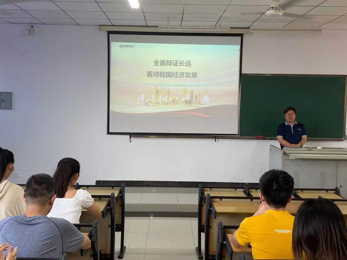 11月26日,学院副院长林仕伟、副院长李长久分别围绕近些年我国外部经济环境发生明显变化、采取的政策等方面进行了讲授。林院长讲到,为了解决疫情期间经济问题,党中央提出在加大“六稳”工作力度的基础上,首次提出落实好“六保”新任务,将“保居民就业、保基本民生、保市场主体、保粮食能源安全、保产业链供应链稳定、保基层运转”贯穿经济社会发展各领域、全过程,努力降低疫情对我国经济社会的不利影响。李院长讲到,当前,我国经济增长实现由负转正,经济运行稳定复苏,在主要经济体中率先实现稳增长、正增长。这份特殊时期的答卷,来的极其不易。