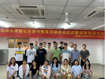 为提升宣讲团队的专业性,让同学们系统了解禁塑相关知识及政策,2021年7月12日上午10:00由学院组织在研发楼710举办了“海南省禁塑社区宣传教育暨讲师培训大会”,海南省生态环保厅领导邹光继、海南大学材料学院院长廖建和、海南省塑料行业协会秘书长周鸿勋、海南省塑料行业协会林彦、海南大学材料学院徐鼐教授、海南大学材料学院王曦老师、翁浚溥老师以及学生志愿者出席本次大会。