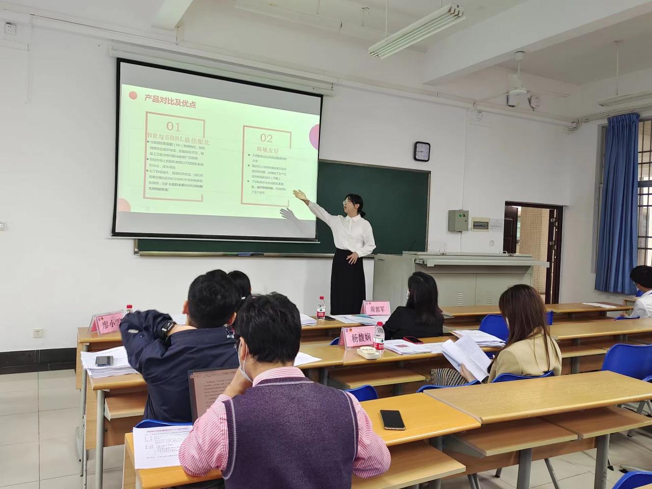 路演PPT汇报环节,各团队进行介绍阐述,参赛选手自信从容、条理清晰,展示出我院学子对创新创业的热情与卓越的创新能力。