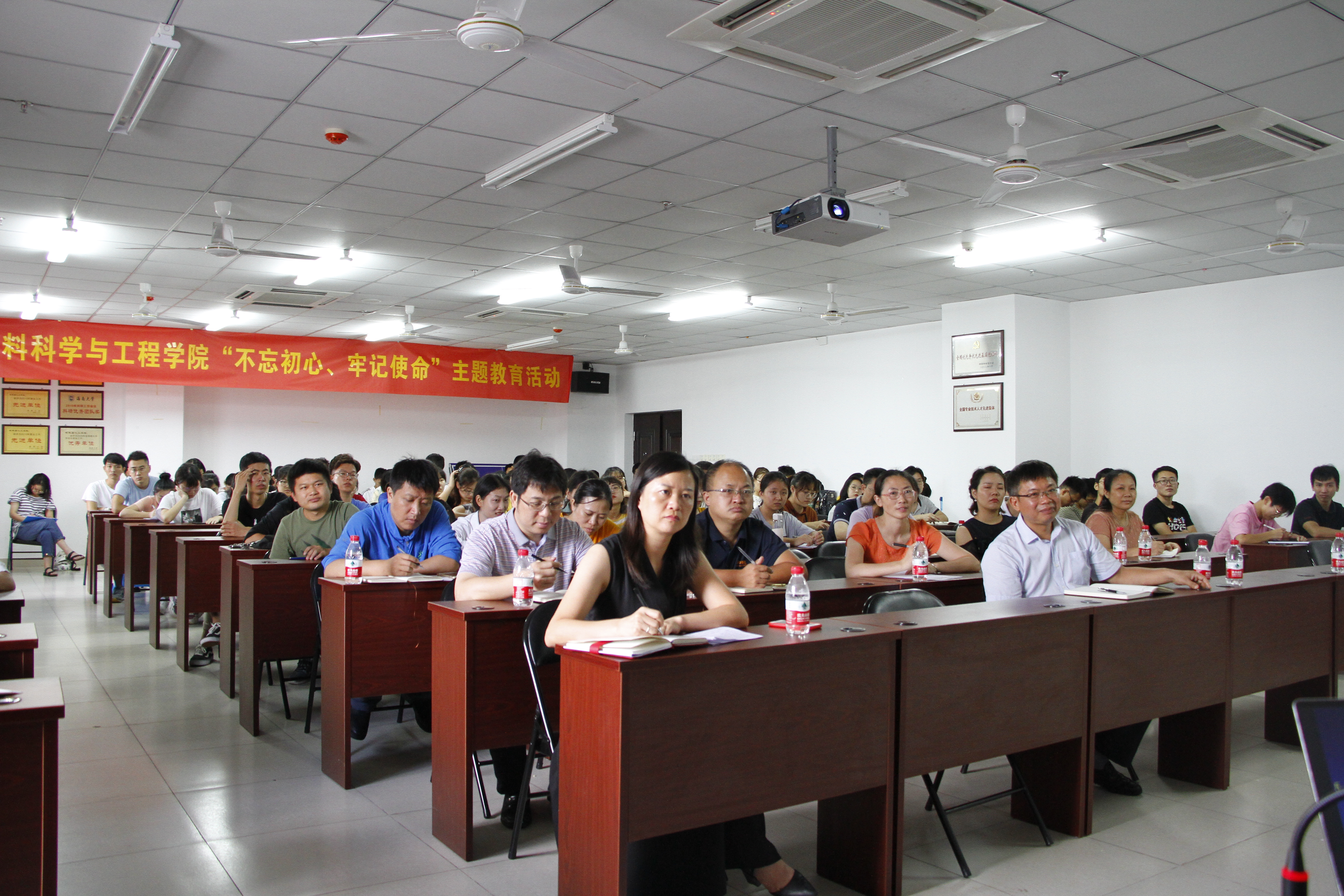 为了更好地帮助党员同志将“不忘初心、牢记使命”主题教育相关重要讲话精神学深悟透,真正让理论学习走深、走实、走心,6月18日下午,学院党委邀请马克思主义学院的李俊教授作为主讲人,在研发中心楼710多媒体教室举办“不忘初心、牢记使命”主题教育讲座,学院全体师生党员近百人参与,讲座由分管学生工作的副处级辅导员周郭军主持。