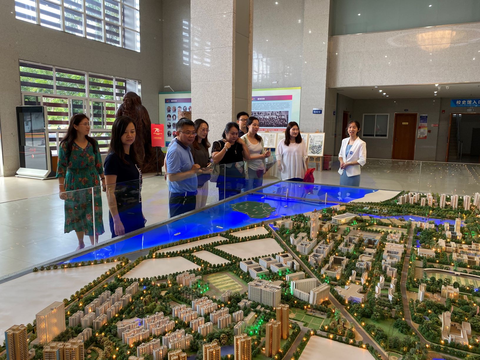 在一楼校园沙盘模型处,讲解员具体介绍了我校海甸、城西、儋州、观澜湖等四个校区协调发展的新格局,并重点就海甸校区的学院布局、场馆设施、交通路线等与师生工作、学生、生活密切相关的问题作了分享。在二楼的展厅里,一张张照片、一件件实物共同见证了海大60多年的风云变迁。参观的党员同志通过观看图文并茂的展板,聆听解说,直观、生动地了解了学校从“草房大学”到世界一流学科创建高校的历史脉络,了解到六十多年的历史变革、专业设置和学科优势,加深了对学校人才培养观念和培养目标的理解,感受到各个领域做出突出成绩的校友成功背后自强不息、艰苦奋斗的精神,对学校的历史、校训、校风、大学精神等学校文化内容有了更加深入的理解。特别是建校初期,全体师生在极其艰苦的条件下,以深厚的爱国情怀、严谨的治学态度和无私的奉献精神,冲破了国际上认定的北纬15°以北不能种植橡胶的“植胶禁区”,创造了北纬18-24°地区大面积种植橡胶的故事,让在场的参观党员同志深刻感受前辈们筚路蓝缕建设海大的辛苦历程,让人不得不感叹我校60多年的巨大发展,并坚定了参观同志们为海南大学的教育事业发展贡献力量的决心。