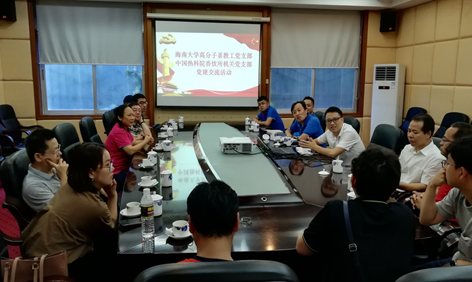 海南大学与中国热带农业科学院源远流长,双方在科技合作和人才培养等上具有明显的互补性。在党支部书记赵艳芳教授的带队下,高分子系教工党支部党员、民主党派和无党派人士一行13人与中国热带农业科学院香饮所副所长、副书记、纪委书记练飞松,办公室主任詹小康,加工与工程技术研究室主任、研究员张彦军等同志就“海南自由贸易港建设总体方案”框架下“我们能为自贸港贡献什么,我们如何建功自贸港”展开了广泛的交流。