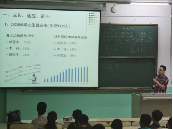 会前,翁老师首先向同学们做了本学年的就业动员。简单分析近几年学院就业情况,提醒同学在并说明疫情对就业环境的冲击要耐得住困难、经得起挑战、抓得住机遇,在保证就业安全的前提下为自己的大学生活画上圆满句号。