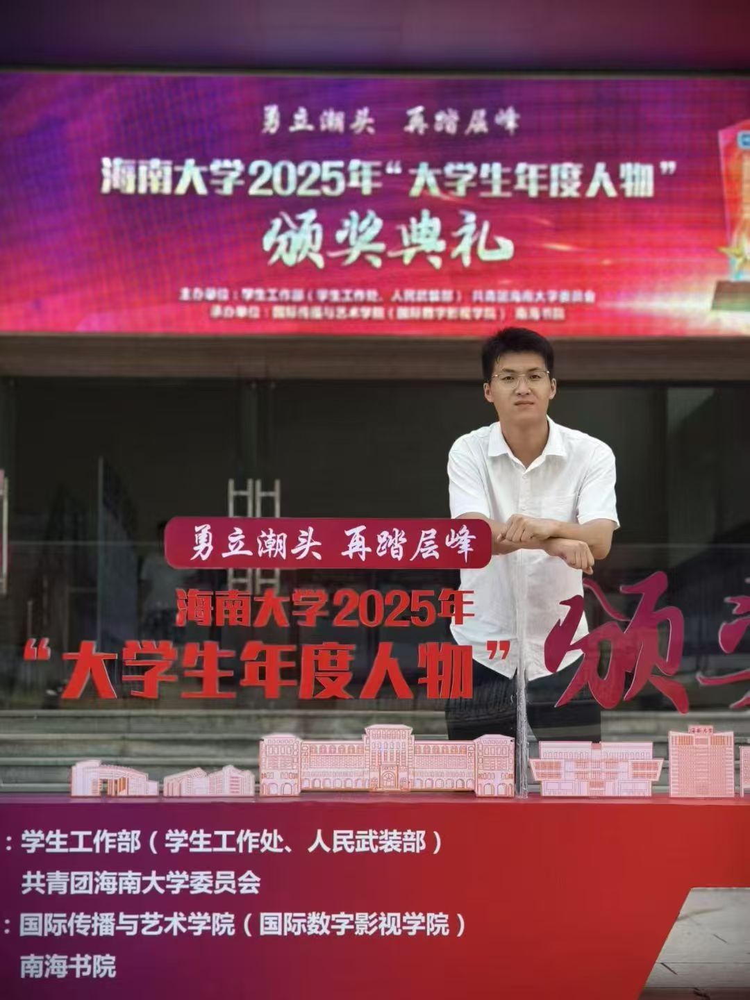 刘肖,中共党员,海南大学2025年大学生年度人物,888集团 2023级博士研究生。入校以来,他思想坚定,政治立场鲜明,始终以党员标准严格要求自己,学习刻苦、勤奋上进,综合素质突出。在学业方面,他基础扎实、成绩优异,课程平均绩点3.6,综合测评排名1/23。先后获得海南大学大学生年度人物、海南大学“自强之星”、乘风书院乘“长”榜样,3次海南大学优秀研究生等荣誉称号,表现突出。在科研创新方面,他坚持面向学术前沿与国家需求开展研究,科研成果丰硕。目前已发表SCI论文18篇,其中第一作者或共同第一作者7篇;申请发明专利7项;主持研究生创新科研课题3项。入选首届中国科协青年人才托举工程博士生专项计划,并先后2次获得博士研究生国家奖学金、1次获得硕士研究生国家奖学金,获评海南大学科技创新先进个人等荣誉,展现出突出的科研创新能力与发展潜力。在学生工作方面,他责任心强、乐于服务,现任博士班长,曾任研究生会主席、硕士班长等职务,积极参与学院与学校建设,工作踏实细致,组织协调能力出色,先后3次获评海南大学优秀研究生干部、优秀研究生会干部等荣誉。展望未来,他将继续坚定理想信念,以国家需求为导向,深耕科研、砥砺奋进,为科技创新事业贡献青春力量。